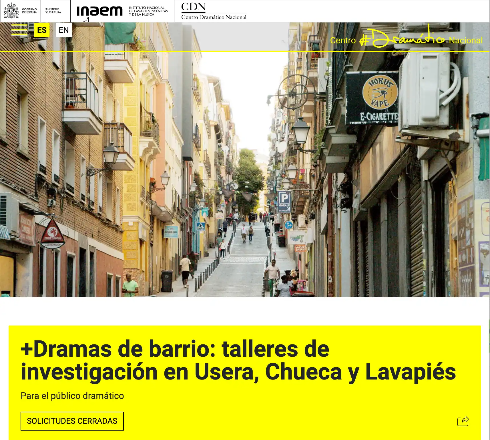 Home » Proyectos » Colaborativos » Artes vivas y cine » Creación comunitaria “Dramas+ Barrio Usera”