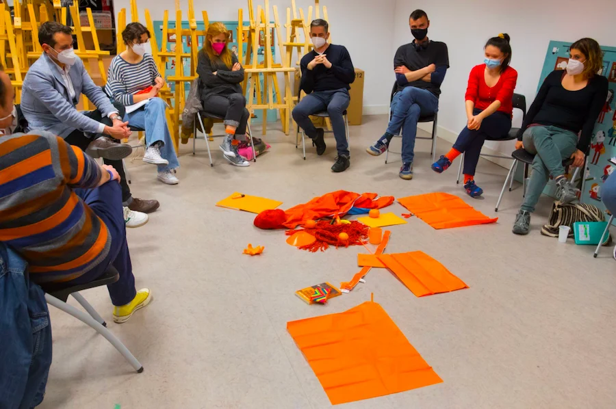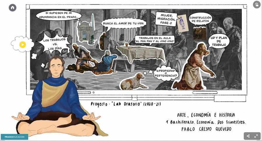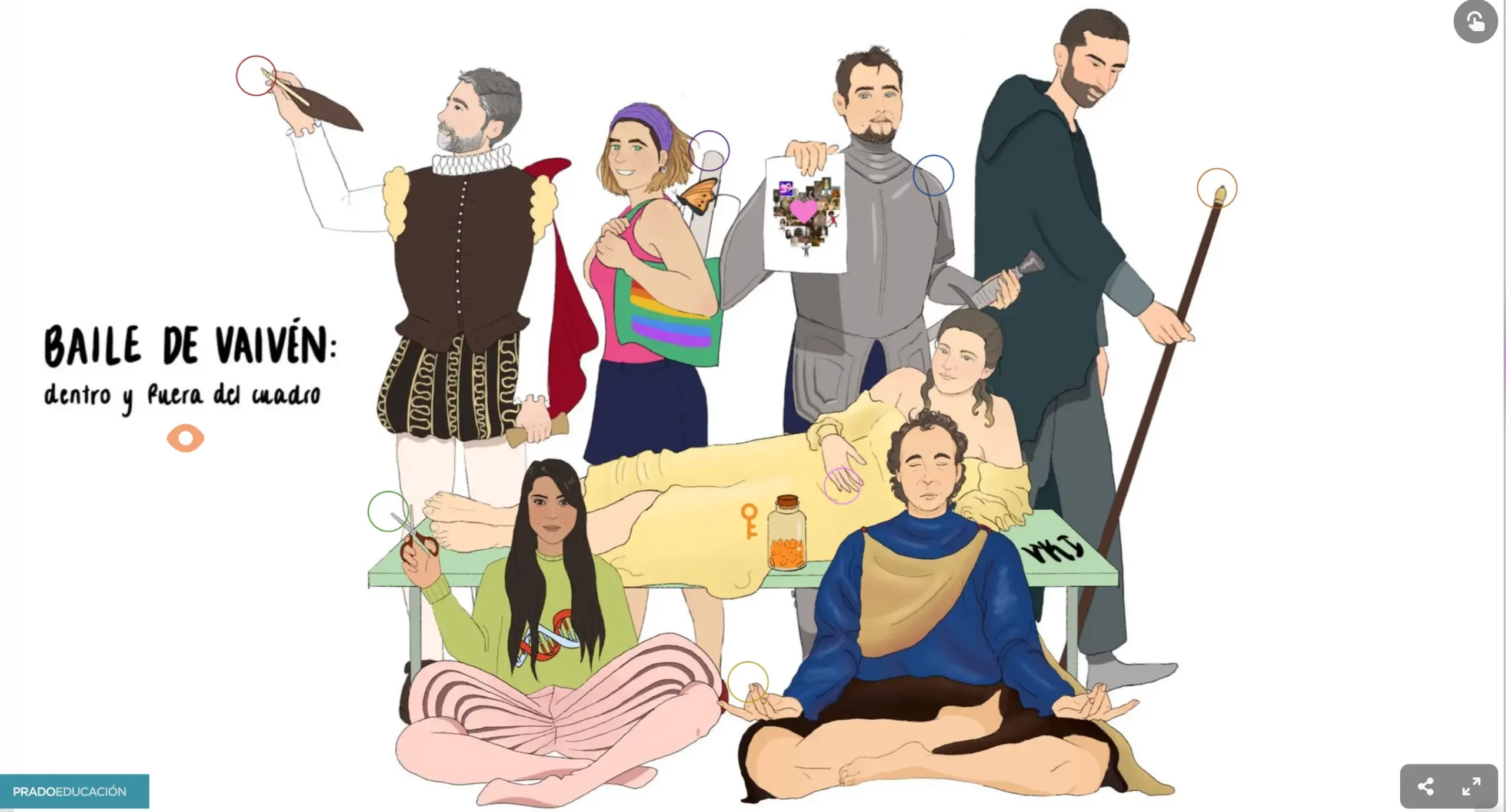 La dinámica de este proyecto es como un baile de vaivén: hacer y deshacer la identidad dentro y fuera de las obras seleccionadas del Museo Prado y en el espacio del centro escolar. Las relaciones escolares son, al fin y al cabo, un ir y volver, un dar y recibir, entrada y salida, hola y adiós, bienvenida y despedida…